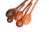 Drewniana łyżka na białym tle