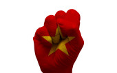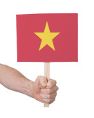 ręka trzyma drewniany pionek, flaga malarstwo, selektywnej ostrości