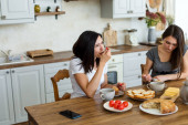 Zdjęcie "Dwie dziewczyny piją herbatę z ciastem i słodyczami przy stole.." może być wykorzystywane do celów osobistych i komercyjnych zgodnie z warunkami zakupionej licencji Royalty-free. Obraz jest dostępny do pobrania w jakości wysokiej rozdzielczości do 5760x3840.