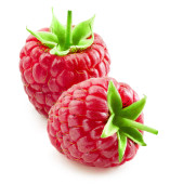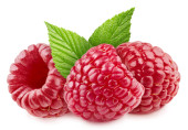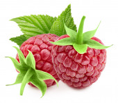 Świeże organiczne raspberri z odizolowanymi liśćmi