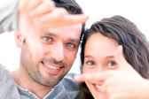 szczęśliwy uśmiechający się para w miłość na białym tle