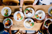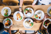 Zdjęcie "Portret szczęśliwej dużej rodziny świętującej zabawę i jedzącej jedzenie na wspólnym lunchu cieszącej się razem spędzaniem czasu w domu" może być wykorzystywane do celów osobistych i komercyjnych zgodnie z warunkami zakupionej licencji Royalty-free. Obraz jest dostępny do pobrania w jakości wysokiej rozdzielczości do 5760x3840.