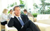 człowiek szczęśliwy biznesu z kolegami na konferencji w tle