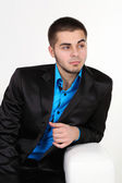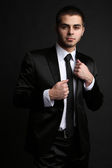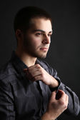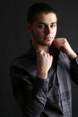przystojny młody mężczyzna na ciemnym tle