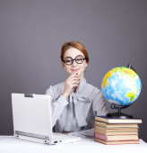 Zdjęcie "młody nauczyciel w okularach z książek, glob i notebooków." może być wykorzystywane do celów osobistych i komercyjnych zgodnie z warunkami zakupionej licencji Royalty-free. Obraz jest dostępny do pobrania w jakości wysokiej rozdzielczości do 5760x3840.