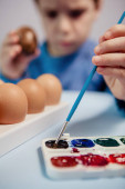 polowanie na trochę maluch chłopiec malarstwo kolorowe jajka na Wielkanoc