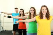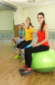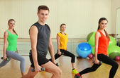 młody piękny Narodów zaangażowanych z kulkami w siłowni