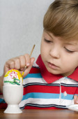 polowanie na trochę maluch chłopiec malarstwo kolorowe jajka na Wielkanoc