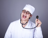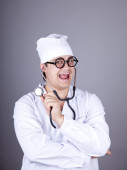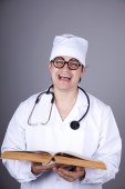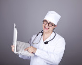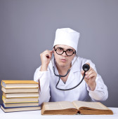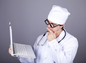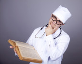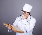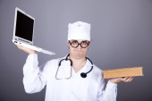 młody lekarz z książek i komputer.