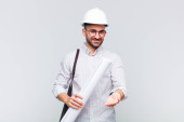 Zdjęcie "młody łysy mężczyzna uśmiecha się radośnie, czując się szczęśliwy i pokazując koncepcję w przestrzeni kopiowania z dłoni" może być wykorzystywane do celów osobistych i komercyjnych zgodnie z warunkami zakupionej licencji Royalty-free. Obraz jest dostępny do pobrania w jakości wysokiej rozdzielczości do 5760x3840.