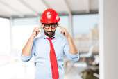 młody łysy mężczyzna krzyczący z podniesionymi rękami, wściekły, sfrustrowany, zestresowany i zdenerwowany