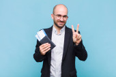 młody łysy mężczyzna czuje obrzydzenie i irytację, wystający język, niechęć do czegoś paskudnego i obrzydliwego
