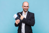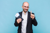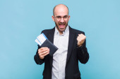 Zdjęcie "młody łysy mężczyzna czuje się jak szczęśliwy i podekscytowany geniusz po realizacji pomysłu, radośnie podnosząc palec, eureka!" może być wykorzystywane do celów osobistych i komercyjnych zgodnie z warunkami zakupionej licencji Royalty-free. Obraz jest dostępny do pobrania w jakości wysokiej rozdzielczości do 5760x3840.