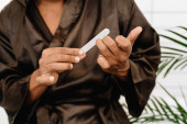 Zbliżenie ręki kobiety trzymającej wacik izolowany