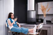 Dziewczyna streaming na żywo w Internecie z telefonu komórkowego, jak spędza czas z chłopakiem podczas samoizolacji w domu. Człowiek grający w gry wideo na konsoli do gier.