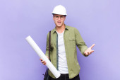 młody blondynka człowiek patrząc zdesperowany i sfrustrowany, zestresowany, nieszczęśliwy i zdenerwowany, krzyczy i krzyczy