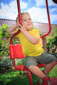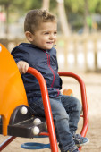 mały chłopiec malucha zabawy na stara karuzela na zewnątrz si