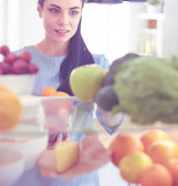 Zdjęcie "Uśmiechnięta młoda kobieta mieszająca świeżą sałatkę w kuchni." może być wykorzystywane do celów osobistych i komercyjnych zgodnie z warunkami zakupionej licencji Royalty-free. Obraz jest dostępny do pobrania w jakości wysokiej rozdzielczości do 5760x3840.
