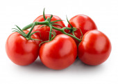 Gałąź pomidorowa odizolowana na białym tle ze ścieżką wycinania i pełną głębią ostrości.