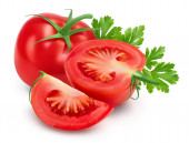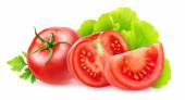 Pomidor z plastrami izolowanymi na białym tle ze ścieżką wycinania i pełną głębią ostrości.