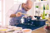 Zdjęcie "Para gotowania razem w kuchni w domu" może być wykorzystywane do celów osobistych i komercyjnych zgodnie z warunkami zakupionej licencji Royalty-free. Obraz jest dostępny do pobrania w jakości wysokiej rozdzielczości do 5760x3840.