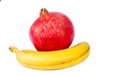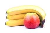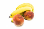 świeżych bananów i brzoskwinia na białym tle na białym tle