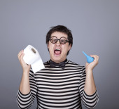 portret śmieszne moda mężczyźni w pończoch z muszką i glas