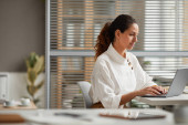 Zdjęcie "Portret odnoszącej sukcesy bizneswoman korzystającej z laptopa siedzącej przy biurku przy oknie i cieszącej się pracą w biurze, przestrzeń do kopiowania" może być wykorzystywane do celów osobistych i komercyjnych zgodnie z warunkami zakupionej licencji Royalty-free. Obraz jest dostępny do pobrania w jakości wysokiej rozdzielczości do 5760x3840.
