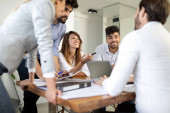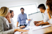 Prezentacja w seminarium konsultacyjnym na temat strategii biznesowej i burzy mózgów w biurze