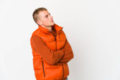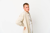 młody biały przystojny mężczyzna, który jest znudzony, zmęczony i potrzebuje dzień relaksu.