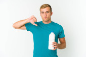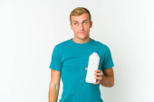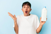 Zdjęcie "Młody biały mężczyzna pijący mleko odizolowane na białym tle jest w szoku, przypomniała sobie ważne spotkanie." może być wykorzystywane do celów osobistych i komercyjnych zgodnie z warunkami zakupionej licencji Royalty-free. Obraz jest dostępny do pobrania w jakości wysokiej rozdzielczości do 5760x3840.