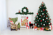 Choinka kominek z prezentami wystrój girlanda wnętrze nowy rok
