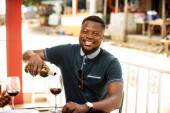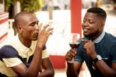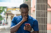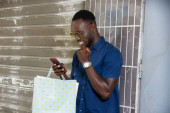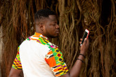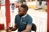 Zdjęcie "przystojny młody Afrykanin człowiek stoi trzymając szklankę czerwonego wina i obsługi jego telefon komórkowy" może być wykorzystywane do celów osobistych i komercyjnych zgodnie z warunkami zakupionej licencji Royalty-free. Obraz jest dostępny do pobrania w jakości wysokiej rozdzielczości do 5760x3840.