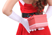 dziewczyna w stroju santa dając zabawka urządzone jako Dom