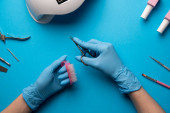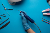 Zdjęcie "Wnętrze salonu piękności, bez ludzi. Manicure miejsc pracy z profesjonalnych narzędzi. Wnętrze pustego nowoczesnego salonu paznokci. Miejsca pracy dla mistrzów manicure" może być wykorzystywane do celów osobistych i komercyjnych zgodnie z warunkami zakupionej licencji Royalty-free. Obraz jest dostępny do pobrania w jakości wysokiej rozdzielczości do 5760x3840.
