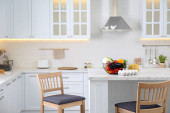 Zdjęcie "Różne świeże warzywa i grzyby na białym stole w nowoczesnej kuchni. Miejsce na tekst" może być wykorzystywane do celów osobistych i komercyjnych zgodnie z warunkami zakupionej licencji Royalty-free. Obraz jest dostępny do pobrania w jakości wysokiej rozdzielczości do 5760x3840.