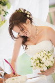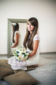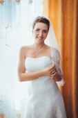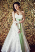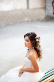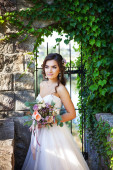 ślub. panna młoda na nietypowe tło w piękna suknia ślubna