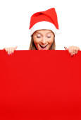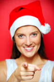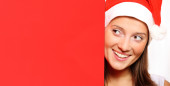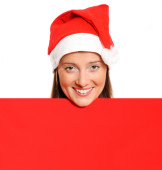 Piękna dziewczyna w kapeluszu Świętego Mikołaja