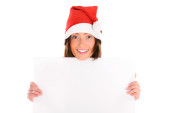Kobieta w kapeluszu Mikołaja przytrzymanie puste pusty pokładzie