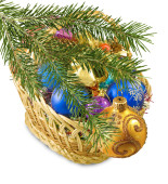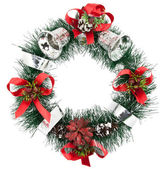 Choinka ozdoba wianek. na białym tle nad biały deseń