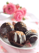 zestaw cukierki czekoladowe na stole na szarym tle