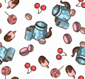 Wzór z filiżanką kawy, rogaliki ozdoba ilustracja