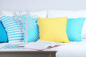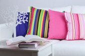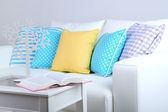 Zdjęcie "Biała kanapa z kolorowe poduszki w pokoju " może być wykorzystywane do celów osobistych i komercyjnych zgodnie z warunkami zakupionej licencji Royalty-free. Obraz jest dostępny do pobrania w jakości wysokiej rozdzielczości do 5760x3840.