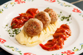 Zdjęcie "klopsiki z tłuczonymi ziemniakami" może być wykorzystywane do celów osobistych i komercyjnych zgodnie z warunkami zakupionej licencji Royalty-free. Obraz jest dostępny do pobrania w jakości wysokiej rozdzielczości do 5760x3840.