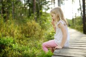 adorable dziewczyna wędrówki w lesie na jesienny dzień