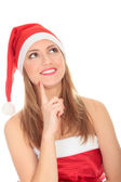 obraz ładny christmas dziewczyna w czerwonej sukni i santa hat