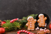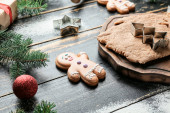 Świąteczna kompozycja z piernikowymi ciasteczkami na ciemnym tle