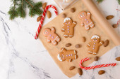 Kobieta dekorowanie Christmas pierniki ciasteczka na stole