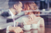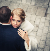ślub. para przytulanie i na tle lustra widzą siebie