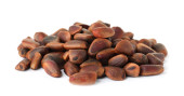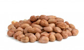 Zbliżenie stosu surowego prażonej gryki wyizolowanej na białym.